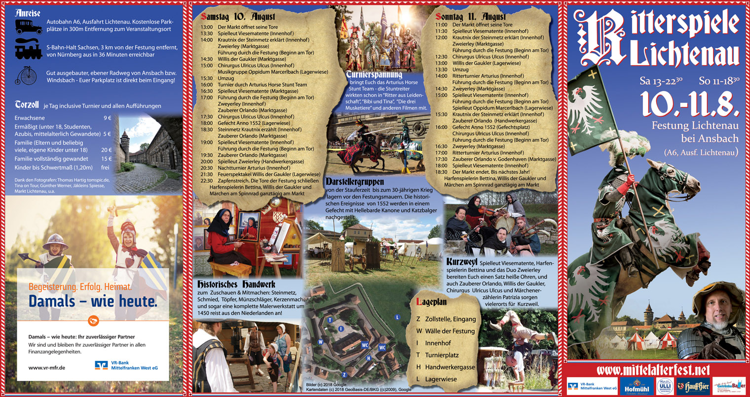 Auch in diesem Jahr betreibt Ihre Feuerwehr Markt Lichtenau am Samstag und Sonntag (10./11.08.19) wieder einen Ausschank am Ritterfest im Innenhof der Festung Lichtenau. Besuchen Sie uns an unserem Zelt „zur Drachenschänke“ und unterstützen Sie somit Ihren örtlichen Feuerwehr Verein. Neben verschiedenen alkoholfreien Getränken erhalten Sie bei uns mehrere Biersorten in mittelalterlichen Tonkrügen. Wir freuen uns auf Ihren Besuch.