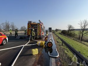 Durch den Brand liefen größere Mengen Öl und Diesel aus, welche abgebunden wurden. Der Fahrer des Sattelzuges blieb unverletzt.